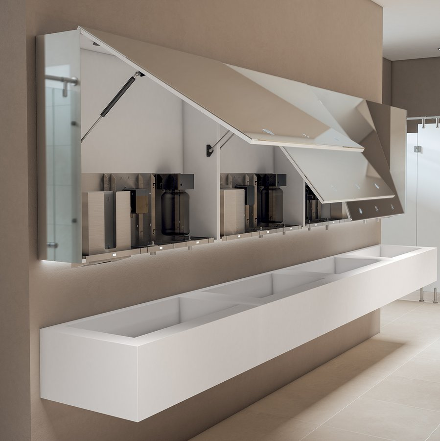 Popis k tovaru - TOWEL zrkadlová skrinka 100cm s automatickým dávkovačom mydla, batériou a zásobníkom papierových uterákov