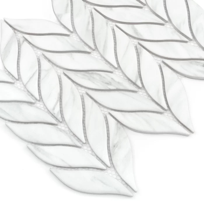 Keramická mozaika zo série BOTTANY bielej farby v tvare lístočkov v pásoch nad sebou. Vhodná na atraktívne dekorovanie kuchynskej zásteny či kúpeľňovej steny. Zabezpečí jedinečný vizuál Vašich priestorov, dodá punc výnimočnosti.