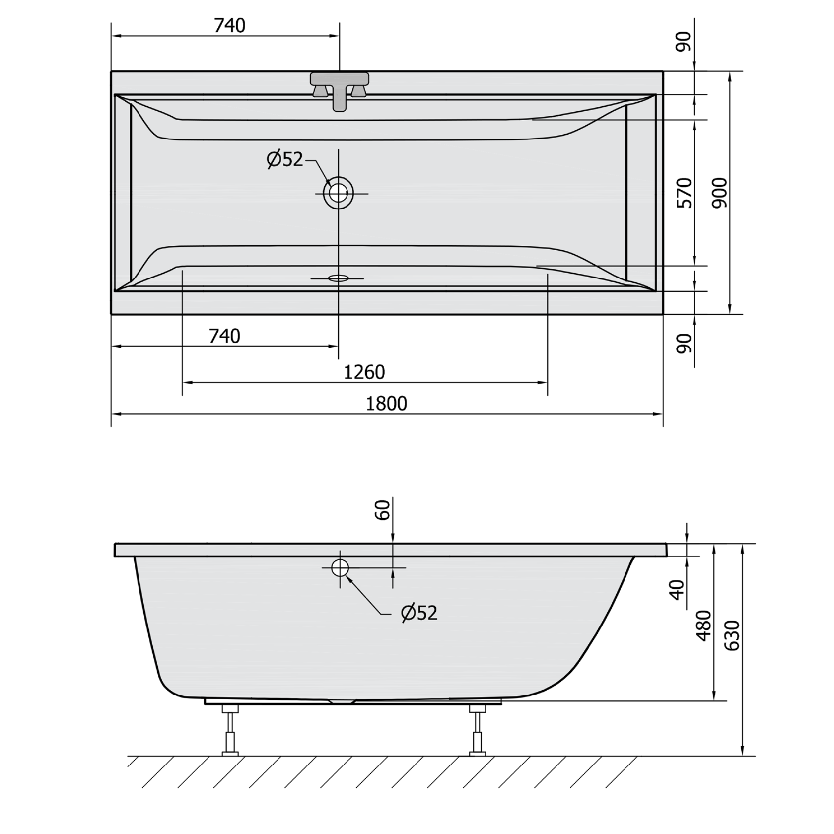 Popis k tovaru - CLEO obdĺžniková vaňa 180x90x48cm, ivory