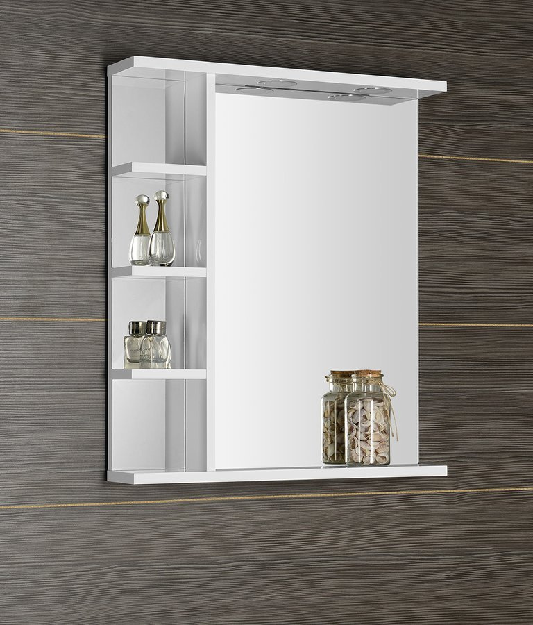 Popis k tovaru - KORIN zrkadlo s LED osvetlením a poličkami 60x70x12cm
